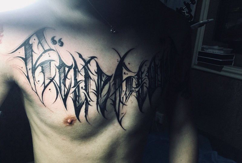 当前位置: 首页 >河南省驻马店市纹身店-墨绣堂刺青工作室纹身图案>花体英文纹身图片_胸部纹身图案
