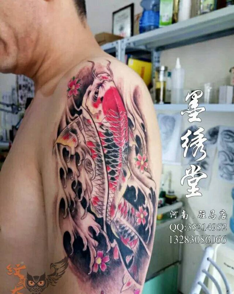当前位置: 首页 >河南省驻马店市纹身店-墨绣堂刺青工作室纹身图案>花斑锦鲤纹身图片