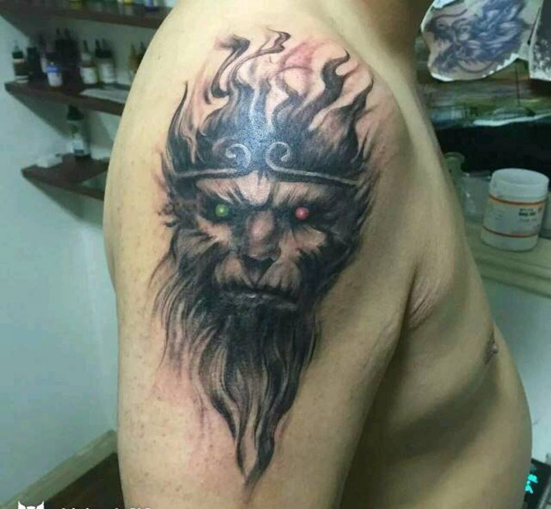 当前位置: 首页 >河南省驻马店市纹身店-墨绣堂刺青工作室纹身图案>大圣归来纹身图片