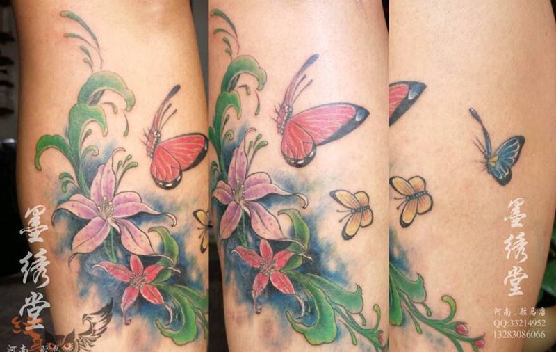 一组15张莲花纹身手