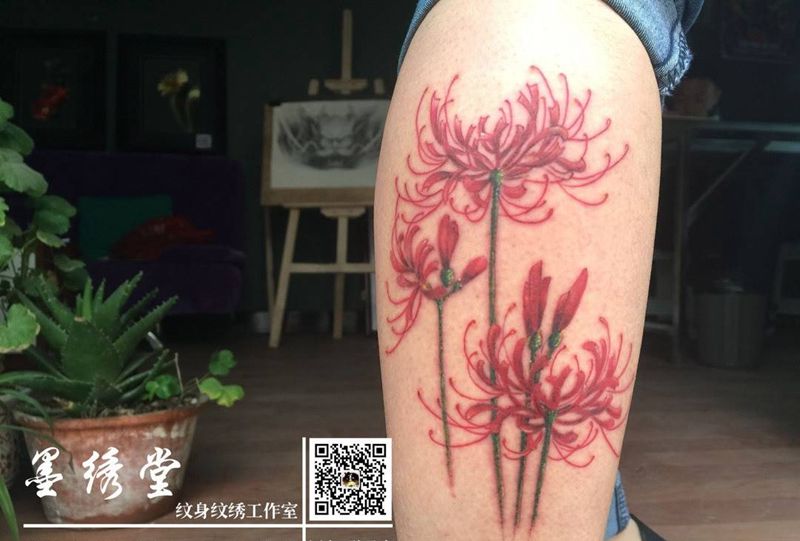 当前位置: 首页 >河南省驻马店市纹身店-墨绣堂刺青工作室纹身图案>彼岸花纹身图片