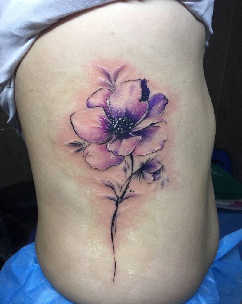 • 时尚性感的腹部莲花纹身图案