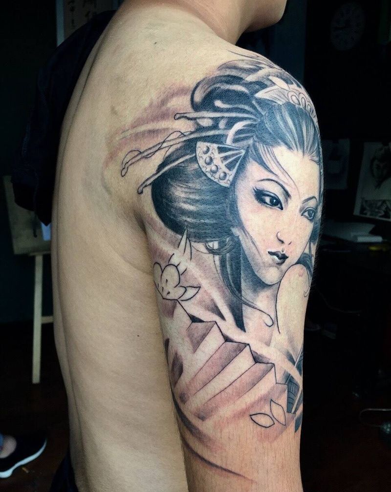 当前位置: 首页 >河南省驻马店市纹身店-墨绣堂刺青工作室纹身图案>艺妓。纹身图片