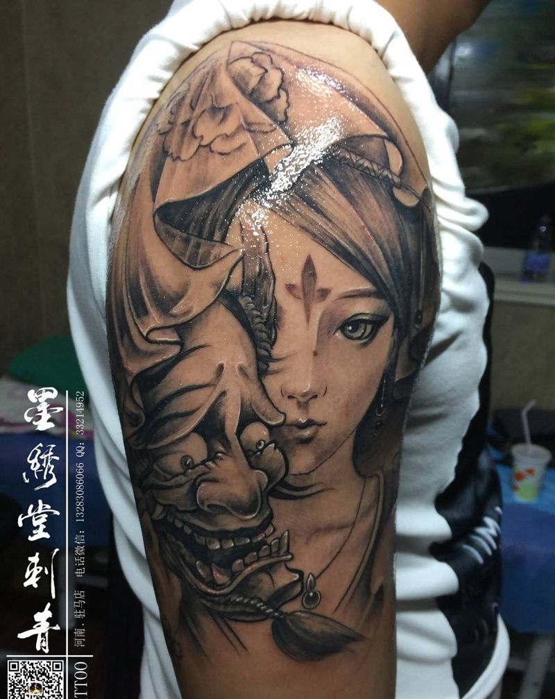 当前位置: 首页 >河南省驻马店市纹身店-墨绣堂刺青工作室纹身图案>艺妓般若纹身图片