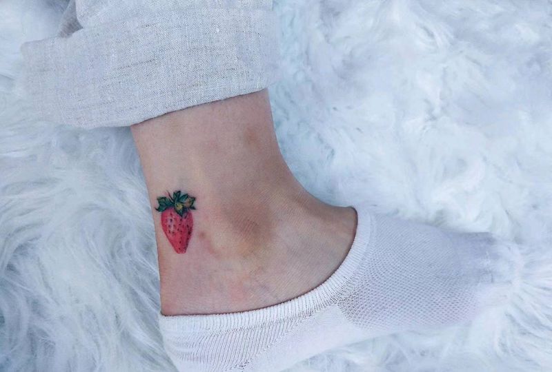 小草莓纹身图片_脚部New School纹身图案
