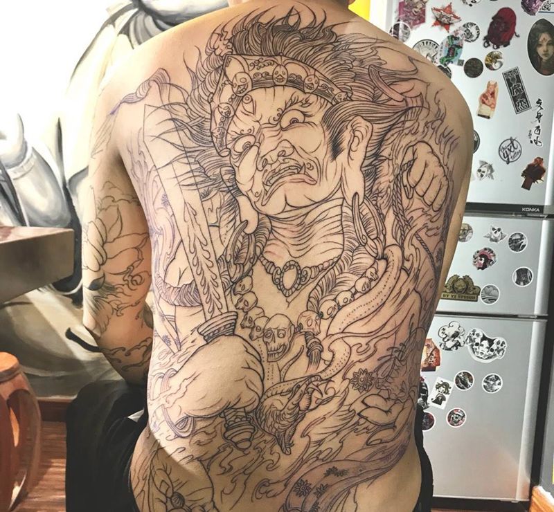 当前位置: 首页 >河南省驻马店市纹身店-竹壹刺青纹身图案>满背线条纹身图片