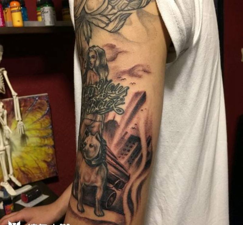 当前位置: 首页 >湖北省武汉市纹身店-武汉南都刺青纹身工作室纹身图案>写实~黑灰,街头纹身图片_手臂手部欧美肖像写实宗教成品纹身图案