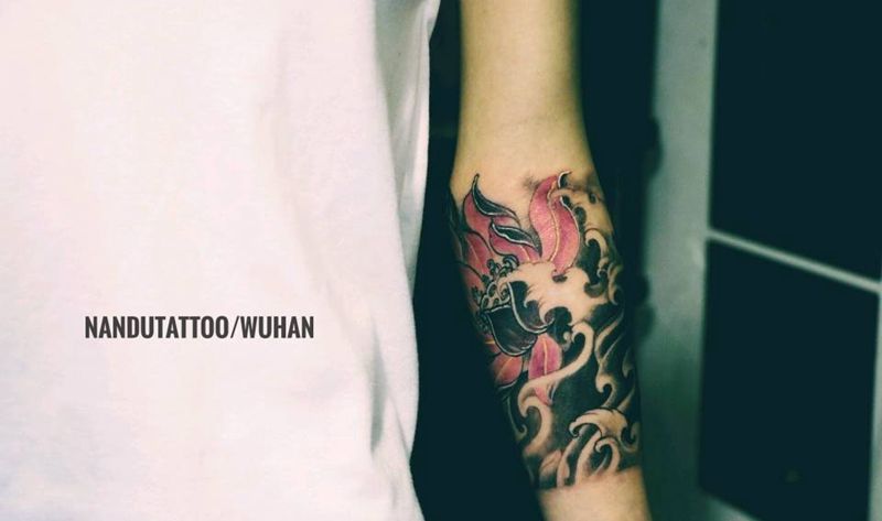 当前位置: 首页 >湖北省武汉市纹身店-武汉南都刺青纹身工作室纹身图案>荷花传统,清新纹身纹身图片_手臂手部传统清新原创成品纹身图案