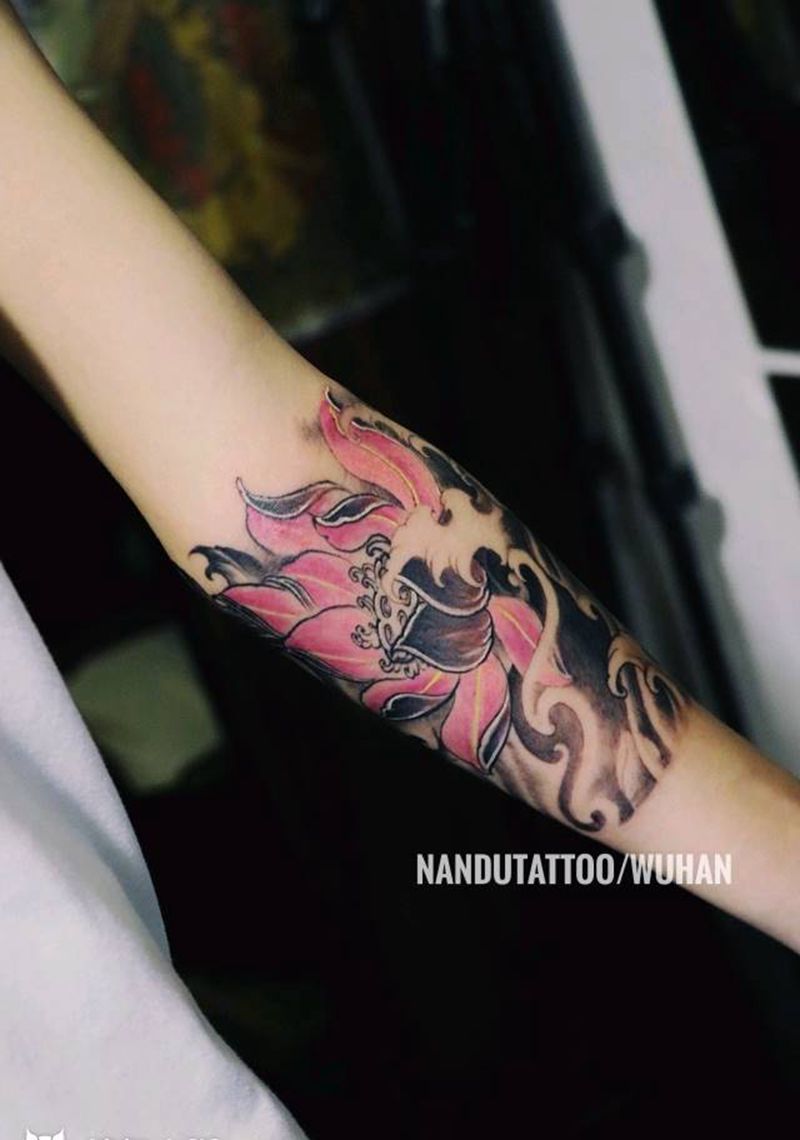 当前位置: 首页 >湖北省武汉市纹身店-武汉南都刺青纹身工作室纹身图案>荷花传统,清新纹身纹身图片_手臂手部传统清新原创成品纹身图案