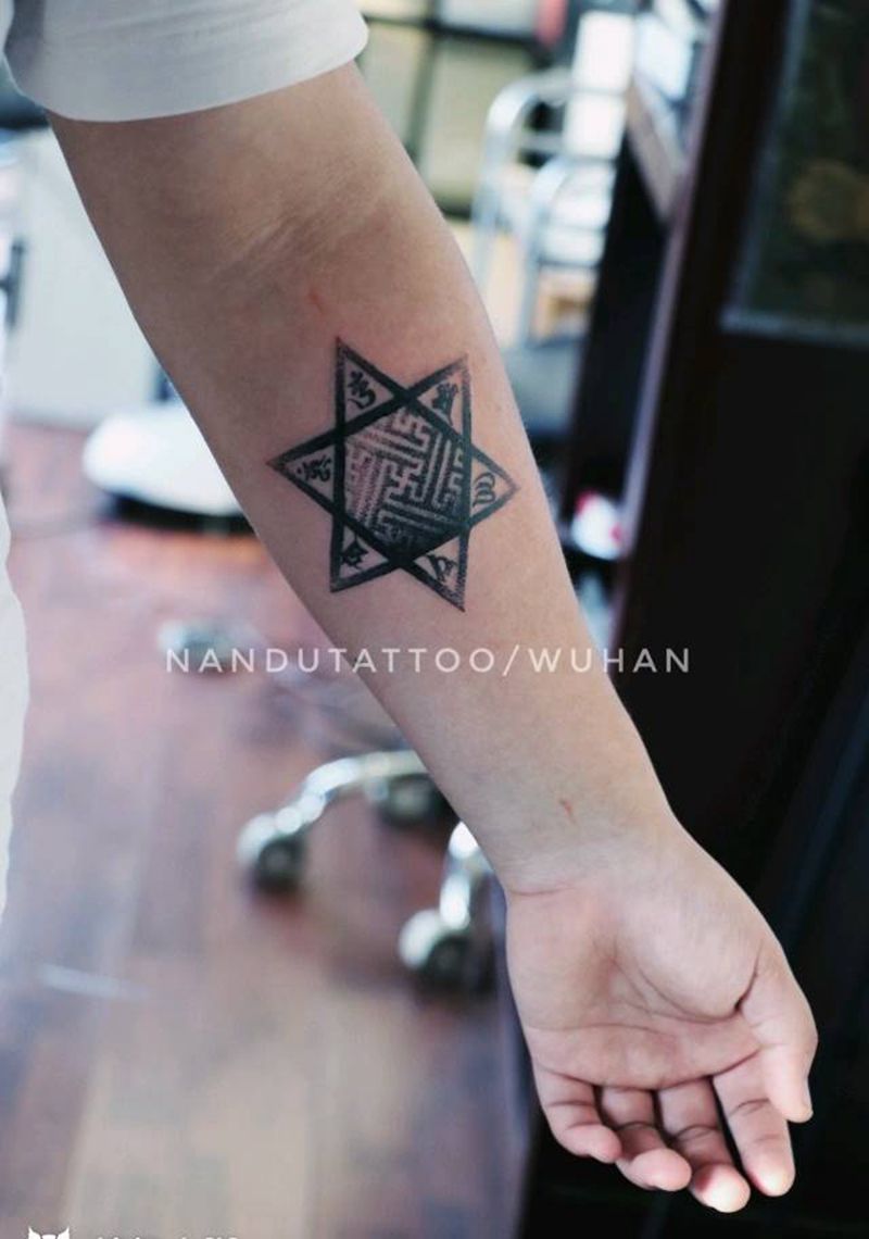 当前位置: 首页 >湖北省武汉市纹身店-武汉南都刺青纹身工作室纹身图案>清新六角形纹身图片_手臂手部清新几何字符图腾情侣原创成品手稿纹身图案