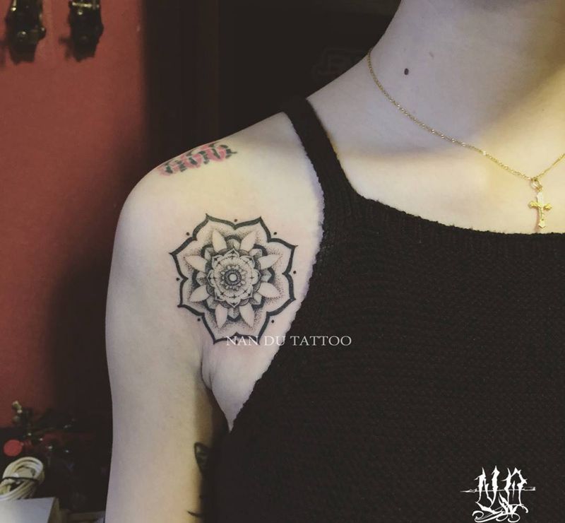 • 纹身吧推荐的披肩图腾半胛纹身图案作品展示