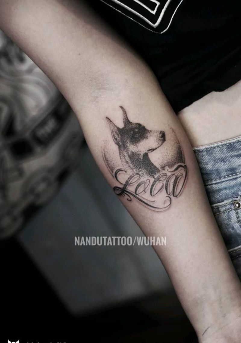 单针小图纹身图片_手部手臂点刺花体字狗纹身图案
