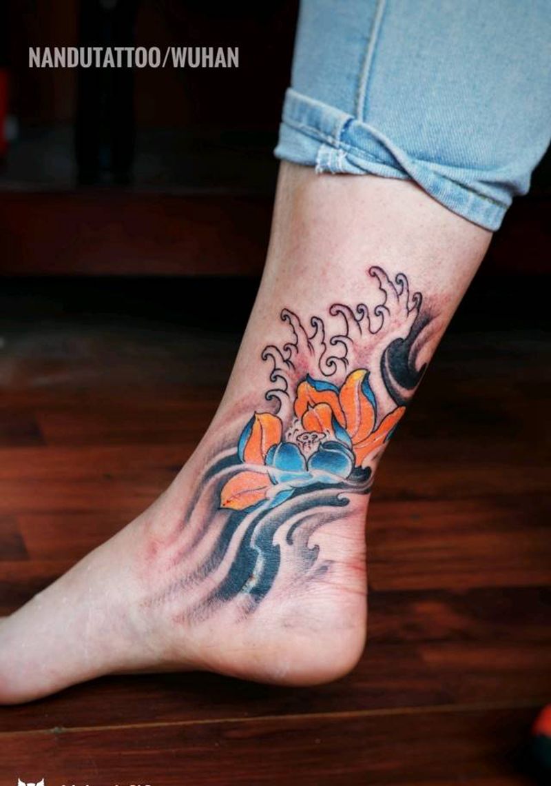 当前位置: 首页 >湖北省武汉市纹身店-武汉南都刺青纹身工作室纹身图案>荷花纹身图片_腿部脚部传统国画原创武汉成品纹身图案