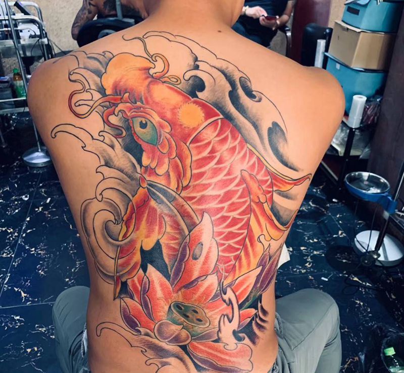 当前位置: 首页 >河南省驻马店市纹身店-阿勇纹身机构纹身图案>彩色锦鲤纹身图片_背部纹身图案