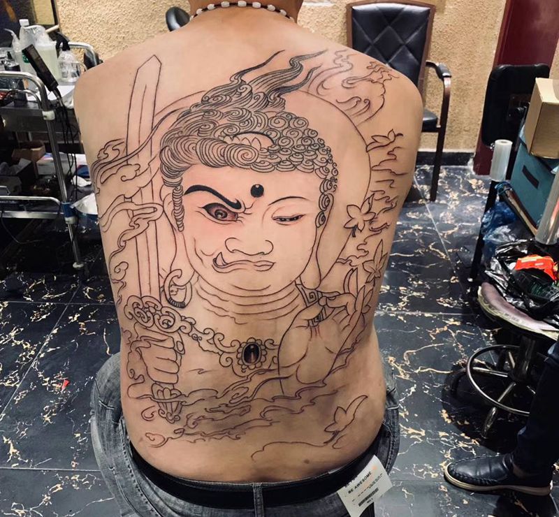 当前位置: 首页 >河南省驻马店市纹身店-阿勇纹身机构纹身图案>不动明王线条纹身图片_背部纹身图案