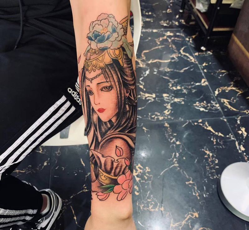 当前位置: 首页 >河南省驻马店市纹身店-阿勇纹身机构纹身图案>小臂艺伎纹身图片_手臂纹身图案
