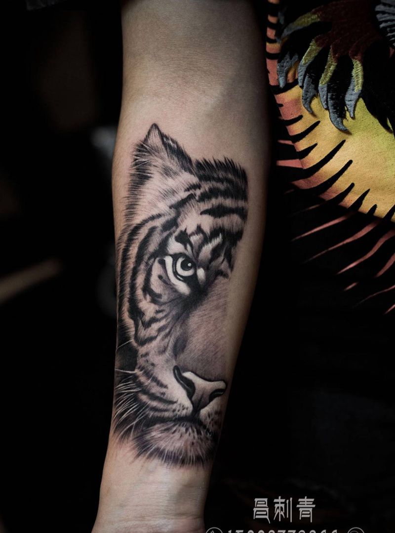 当前位置: 首页 >湖北省武汉市纹身店-昌刺青纹身图案>半面老虎作品纹身图片