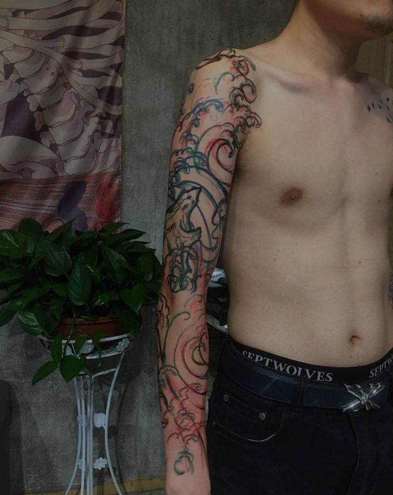 当前位置: 首页 >湖北省武汉市纹身店-昌刺青纹身图案>浪臂线条完成。纹身图片