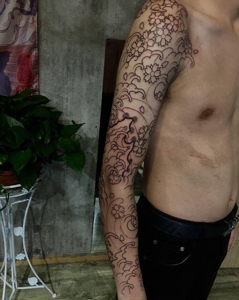 当前位置: 首页 >湖北省武汉市纹身店-昌刺青纹身图案>浪臂线条完成。纹身图片