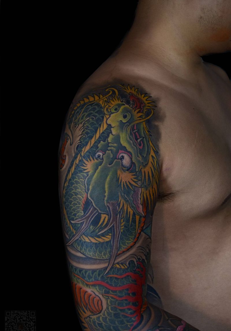 当前位置: 首页 >湖北省武汉市纹身店-昌刺青纹身图案>花臂龙纹身图片_手部手臂新传统纹身图案