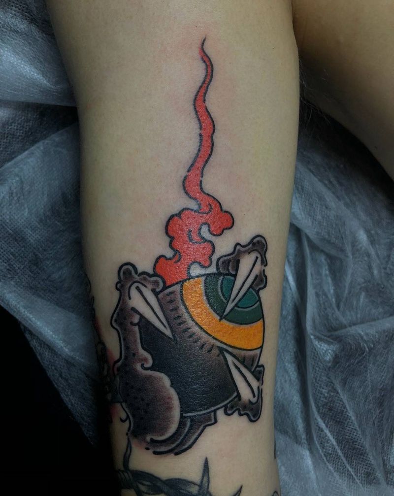 • T包小腿吹火男+阿多福纹身图片_腿部老传统新传统吹火男阿