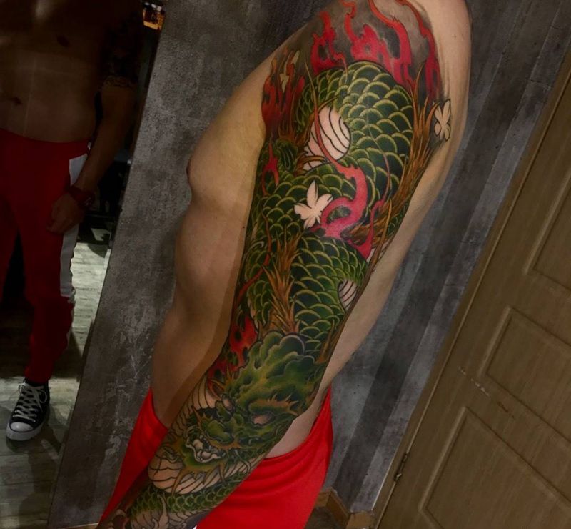 当前位置: 首页 >湖北省武汉市纹身店-昌刺青纹身图案>花臂龙未完成纹身图片