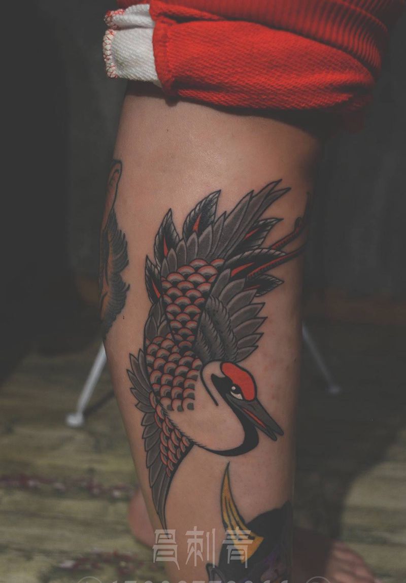 当前位置: 首页 >湖北省武汉市纹身店-昌刺青纹身图案>日式仙鹤纹身图片_成品脚部腿部传统清新动物纹身图案