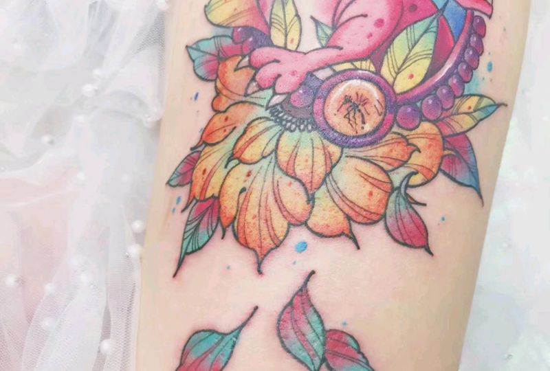 当前位置: 首页 >湖北省武汉市纹身店-KOKO TATTOO原创定制纹身店纹身图案>霸王龙纹身图片_腿部水彩霸王龙花宝石纹身图案