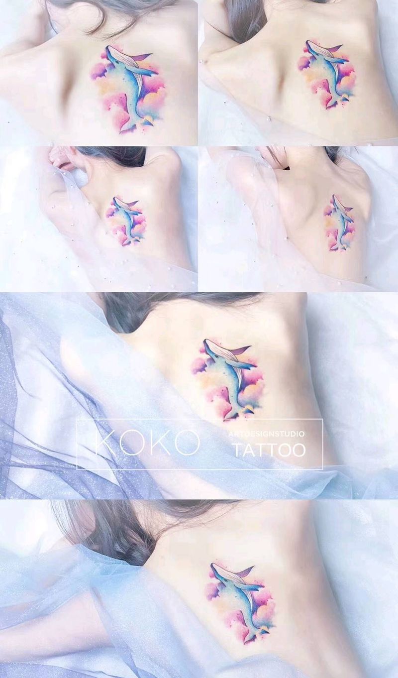 当前位置: 首页 >湖北省武汉市纹身店-KOKO TATTOO原创定制纹身店纹身图案>梦幻鲸鱼纹身图片_背部水彩鲸鱼水彩云朵纹身图案