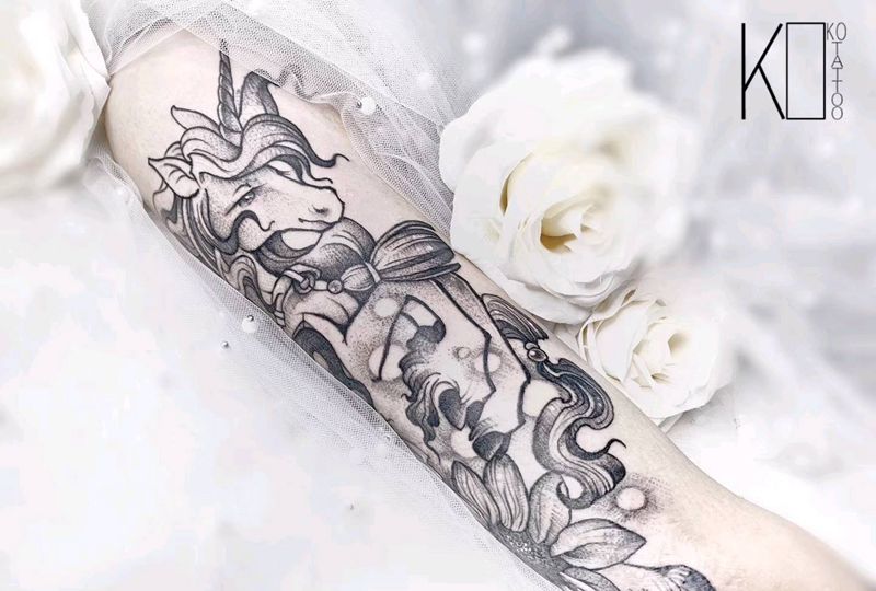 当前位置: 首页 >湖北省武汉市纹身店-KOKO TATTOO原创定制纹身店纹身图案>独角兽(伤疤遮盖)纹身图片_手臂点刺独角兽伤疤遮盖菊花纹身图案