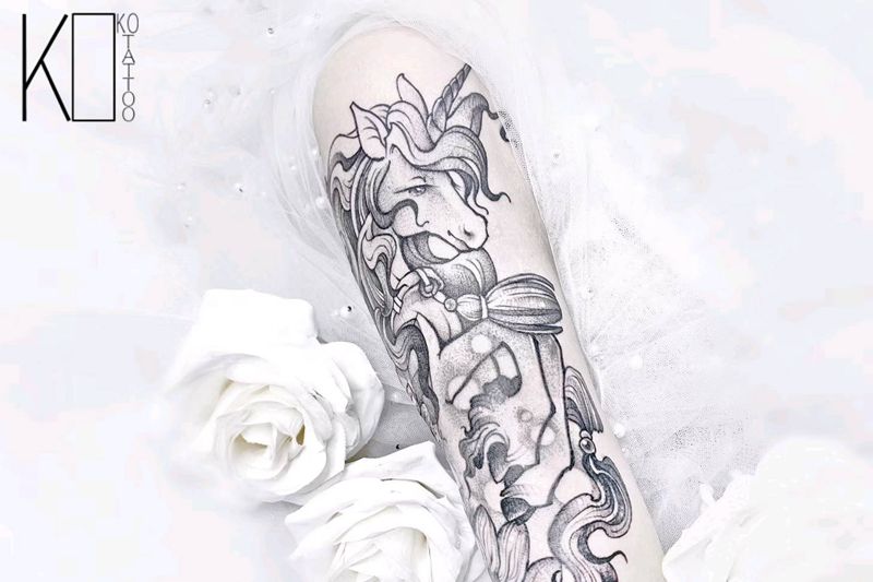 当前位置: 首页 >湖北省武汉市纹身店-KOKO TATTOO原创定制纹身店纹身图案>独角兽(伤疤遮盖)纹身图片_手臂点刺独角兽伤疤遮盖菊花纹身图案