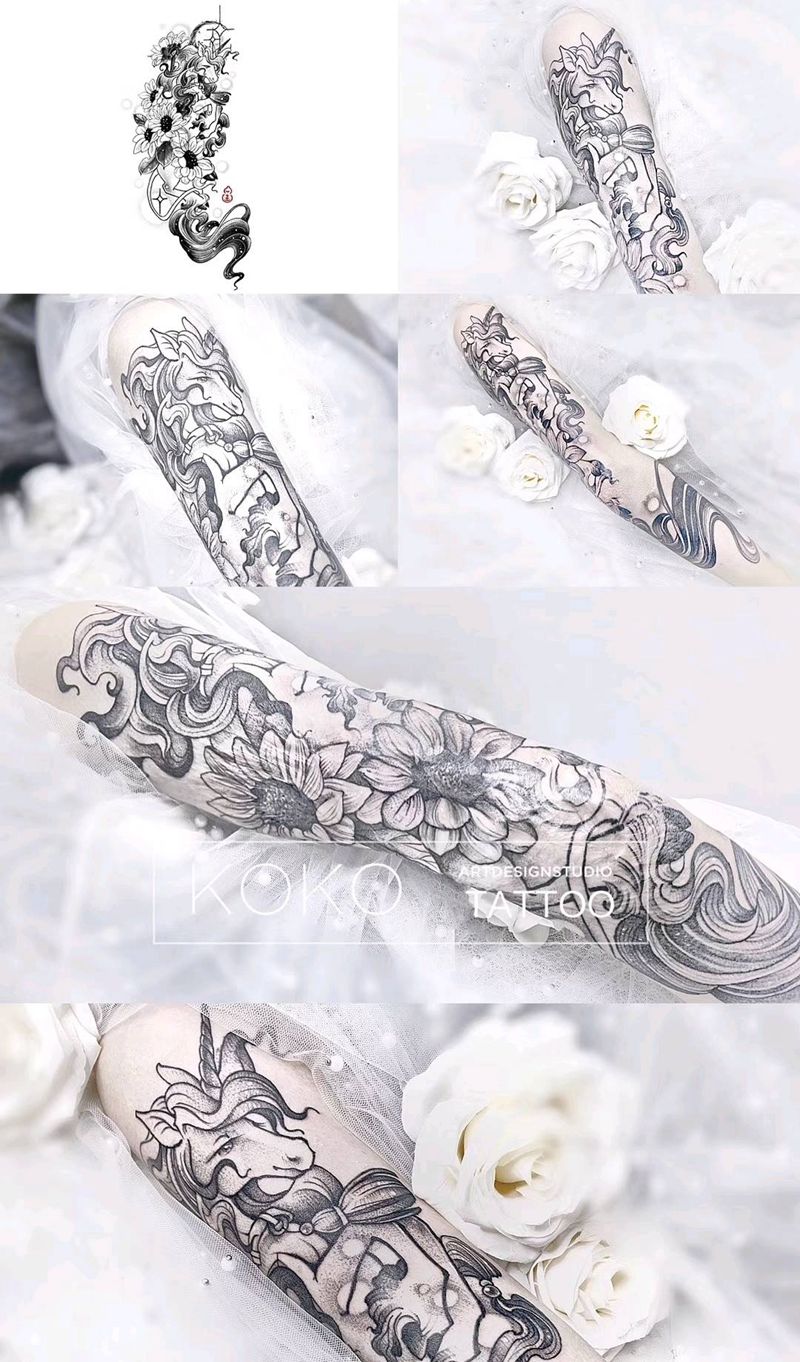 当前位置: 首页 >湖北省武汉市纹身店-KOKO TATTOO原创定制纹身店纹身图案>独角兽(伤疤遮盖)纹身图片_手臂点刺独角兽伤疤遮盖菊花纹身图案