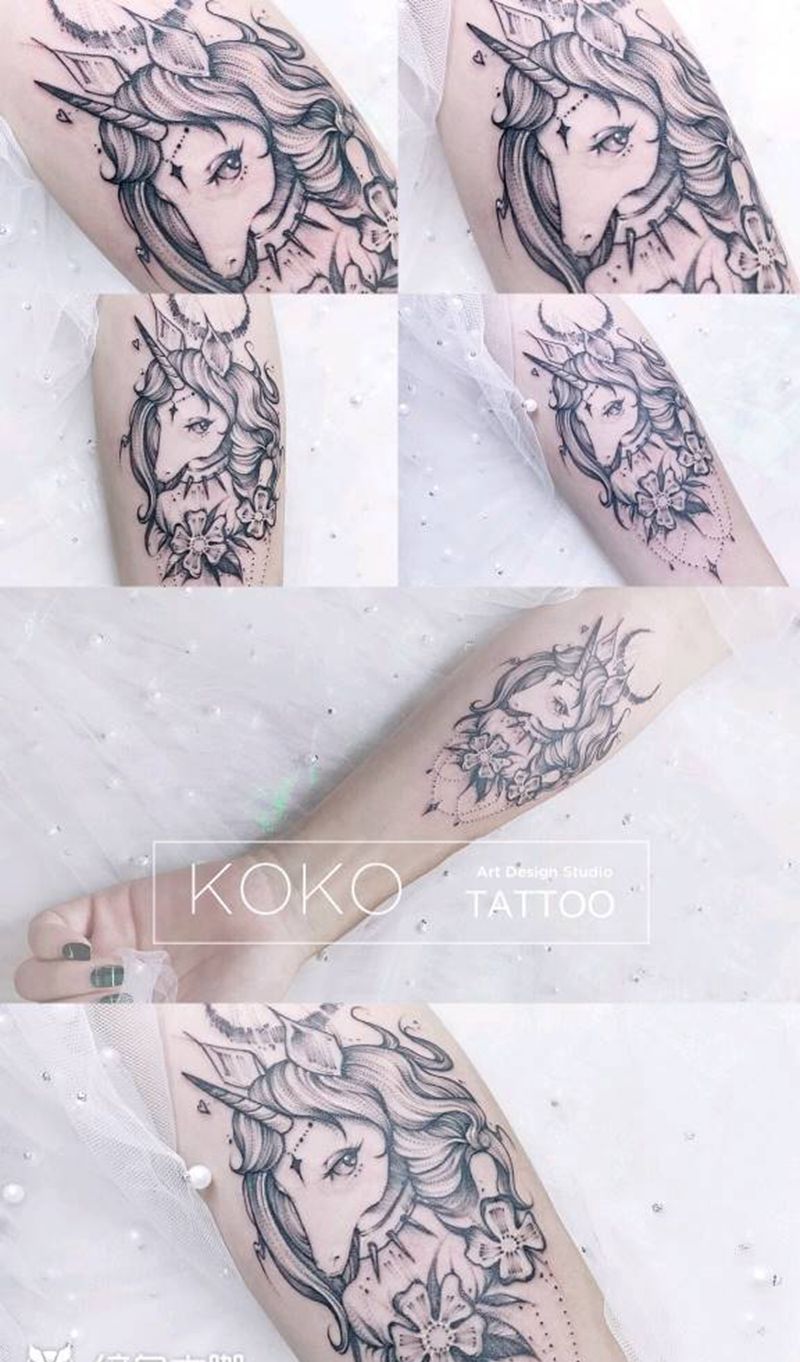 当前位置: 首页 >湖北省武汉市纹身店-KOKO TATTOO原创定制纹身店纹身图案>独角兽纹身图片_手部手臂点刺独角兽月亮吊坠纹身图案