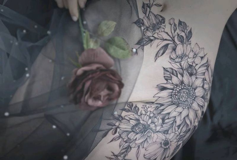 • 女性大花胸纹身_43张霸气漂亮的女性大花胸纹身图案作品