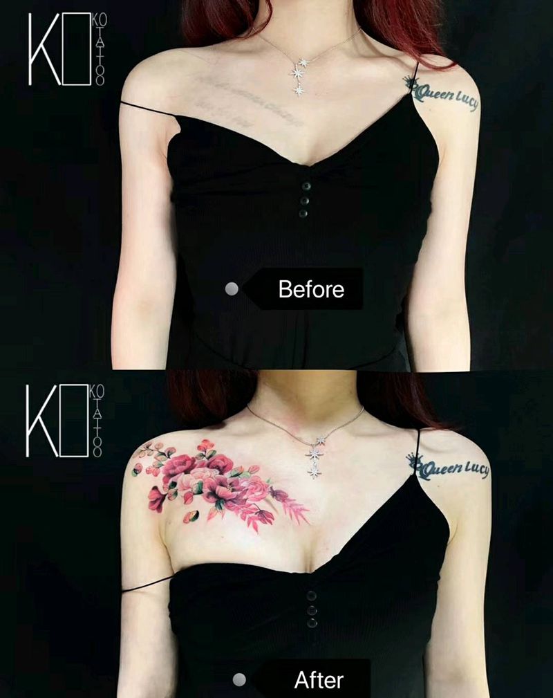 • 女性大花胸纹身_43张霸气漂亮的女性大花胸纹身图案作品