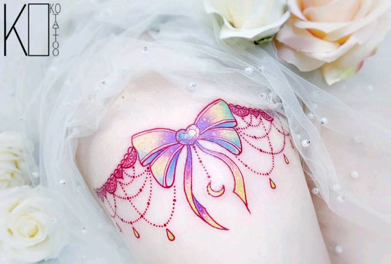 当前位置: 首页 >湖北省武汉市纹身店-KOKO TATTOO原创定制纹身店纹身图案>蝴蝶结纹身图片_腿部水彩蝴蝶结腿环少女心纹身图案
