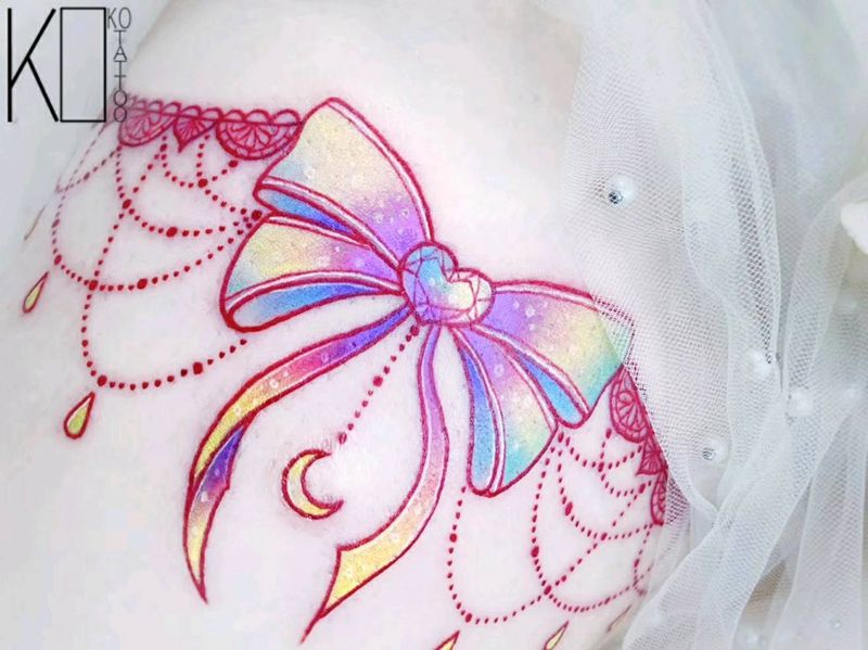 当前位置: 首页 >湖北省武汉市纹身店-KOKO TATTOO原创定制纹身店纹身图案>蝴蝶结纹身图片_腿部水彩蝴蝶结腿环少女心纹身图案