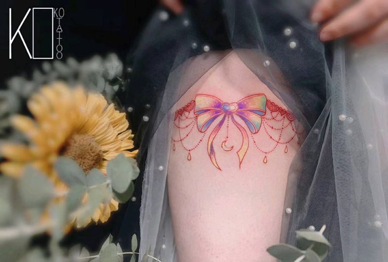 当前位置: 首页 >湖北省武汉市纹身店-KOKO TATTOO原创定制纹身店纹身图案>蝴蝶结纹身图片_腿部水彩蝴蝶结腿环少女心纹身图案