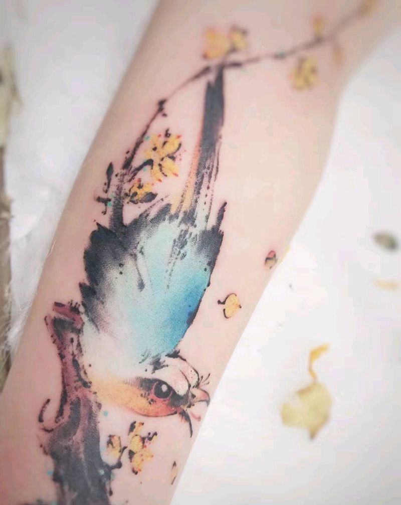 当前位置: 首页 >湖北省武汉市纹身店-KOKO TATTOO原创定制纹身店纹身图案>鸣纹身图片_手部水墨水彩鸟泼墨淡彩纹身图案