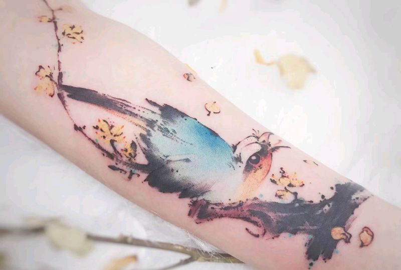 当前位置: 首页 >湖北省武汉市纹身店-KOKO TATTOO原创定制纹身店纹身图案>鸣纹身图片_手部水墨水彩鸟泼墨淡彩纹身图案