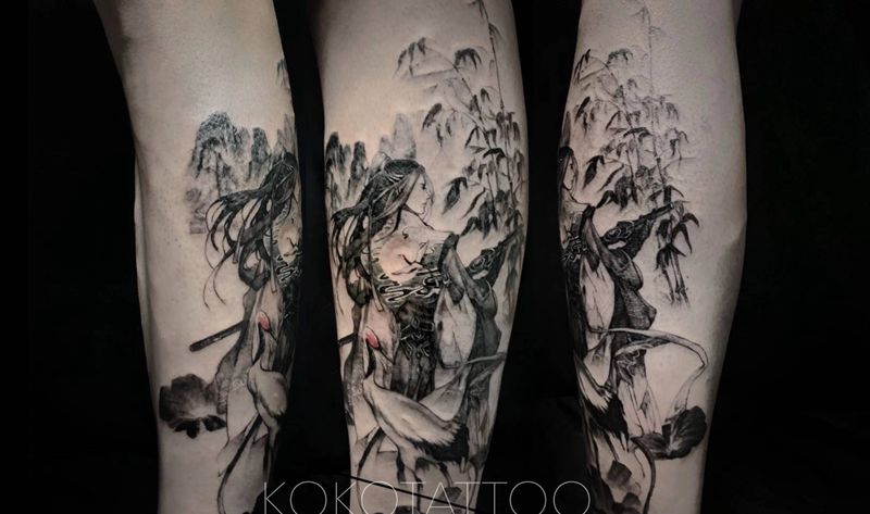 当前位置: 首页 >湖北省武汉市纹身店-KOKO TATTOO原创定制纹身店纹身图案>水墨国风纹身图片_腿部水墨水墨鹤国风纹身图案