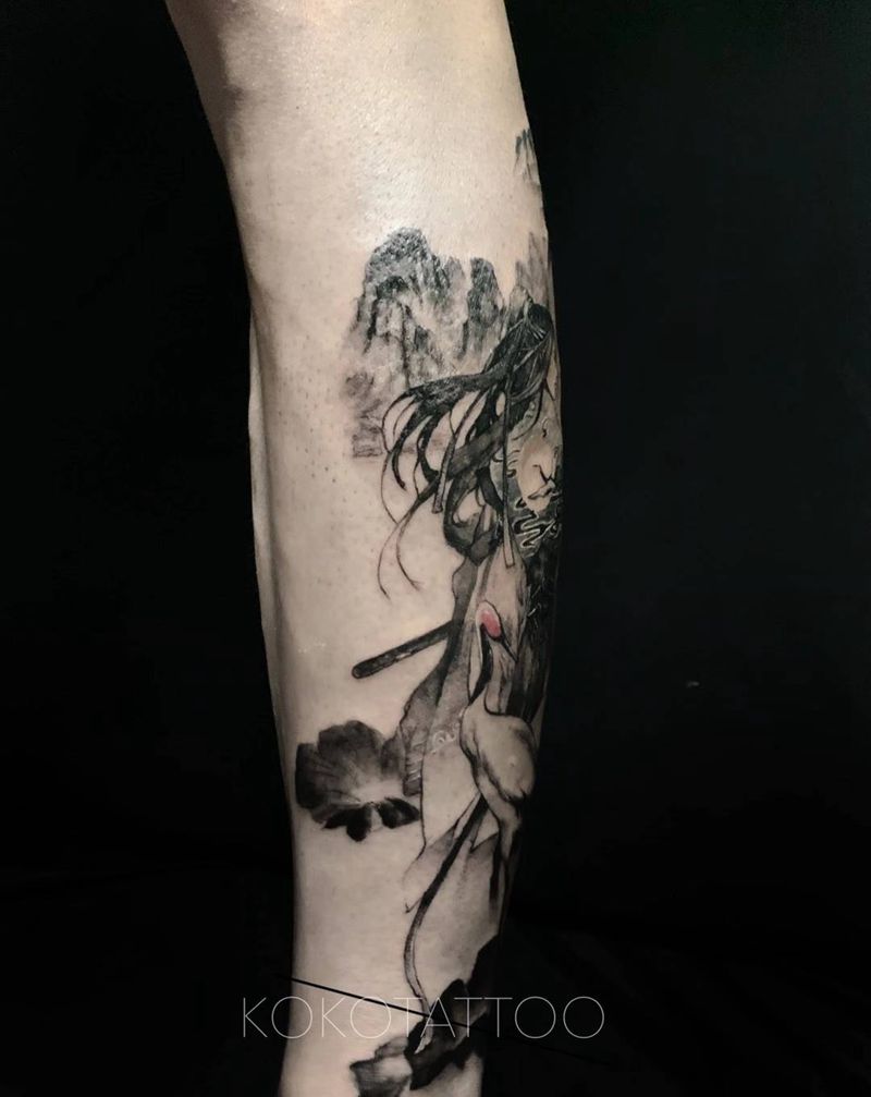 当前位置: 首页 >湖北省武汉市纹身店-KOKO TATTOO原创定制纹身店纹身图案>水墨国风纹身图片_腿部水墨水墨鹤国风纹身图案
