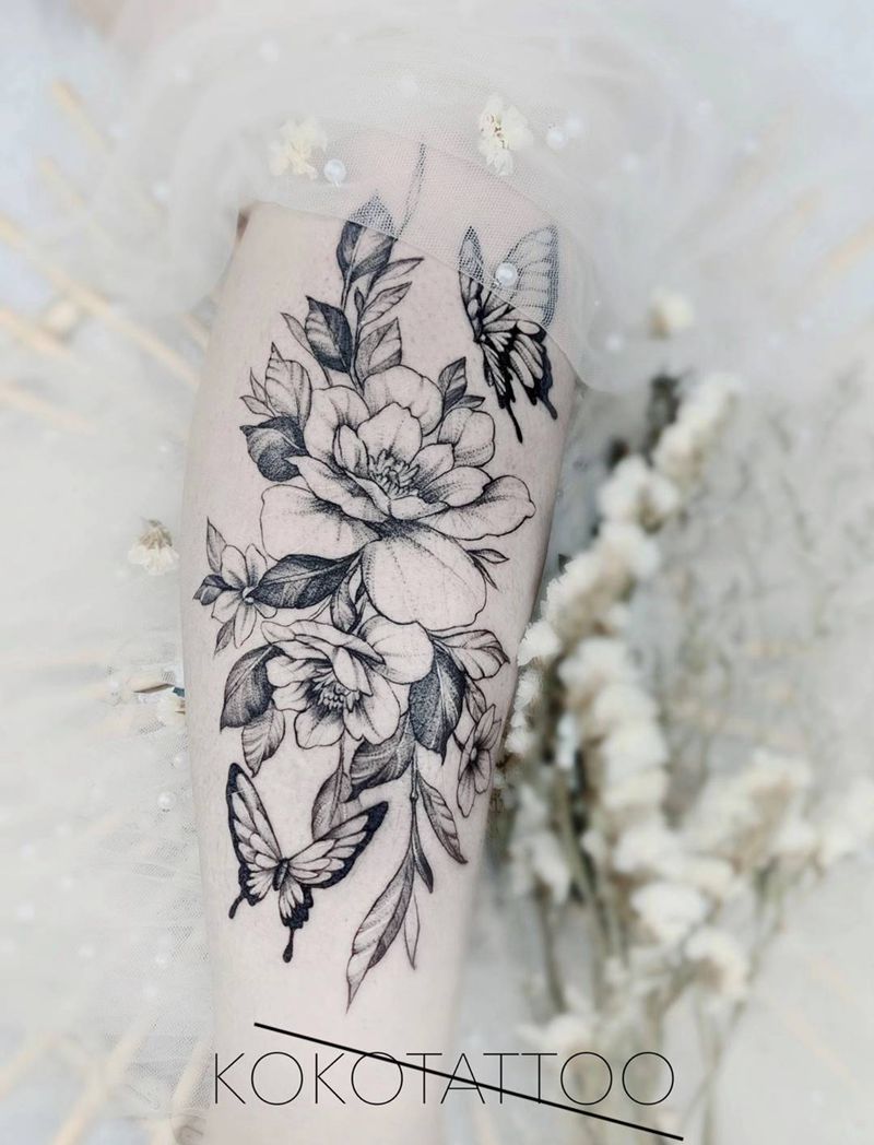 当前位置: 首页 >湖北省武汉市纹身店-KOKO TATTOO原创定制纹身店纹身图案>素花纹身图片_腿部点刺素花小清新大腿纹身图案