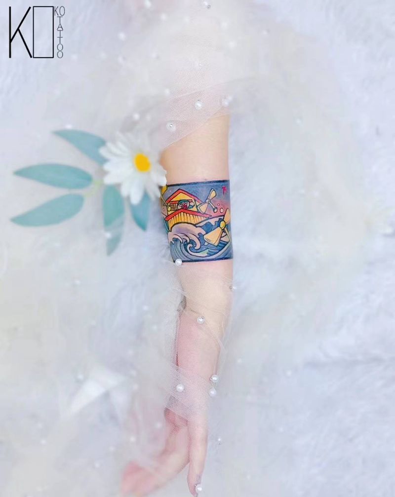 当前位置: 首页 >湖北省武汉市纹身店-KOKO TATTOO原创定制纹身店纹身图案>哆啦A梦——手环纹身图片_手臂Old SchoolNew School卡通手环遮盖设计纹身图案