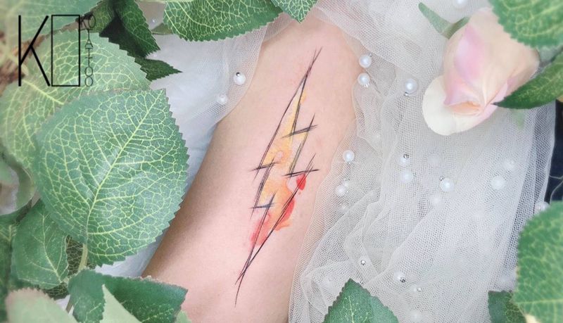 当前位置: 首页 >湖北省武汉市纹身店-KOKO TATTOO原创定制纹身店纹身图案>闪电纹身图片_手臂水彩闪电泼墨小清新纹身图案
