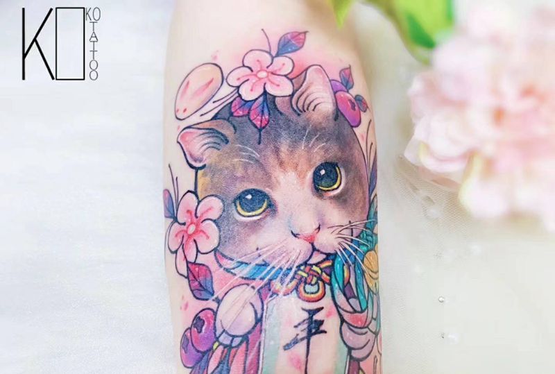 当前位置: 首页 >湖北省武汉市纹身店-KOKO TATTOO原创定制纹身店纹身图案>猫纹身图片_手臂水彩Old School喵咪私人定制一人一图纹身图案