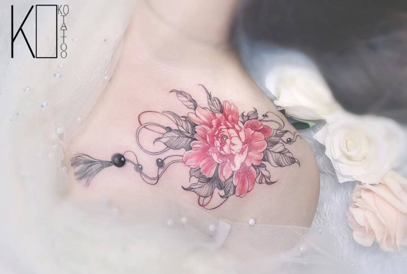 当前位置: 首页 >湖北省武汉市纹身店-KOKO TATTOO原创定制纹身店纹身图案>花卉——遮盖纹身图片_肩部水彩花卉遮盖设计流苏纹身图案