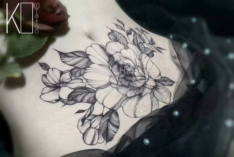 花卉——剖腹产遮盖纹身图片_腹部点刺花卉遮盖定制设计纹身图案