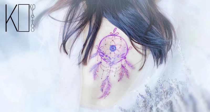 当前位置: 首页 >湖北省武汉市纹身店-KOKO TATTOO原创定制纹身店纹身图案>捕梦网纹身图片_背部水彩捕梦网一人一图定制设计纹身图案