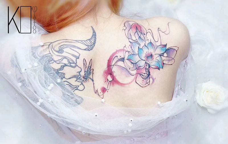 当前位置: 首页 >湖北省武汉市纹身店-KOKO TATTOO原创定制纹身店纹身图案>莲花纹身图片_背部水彩写意一人一图添加修改纹身图案